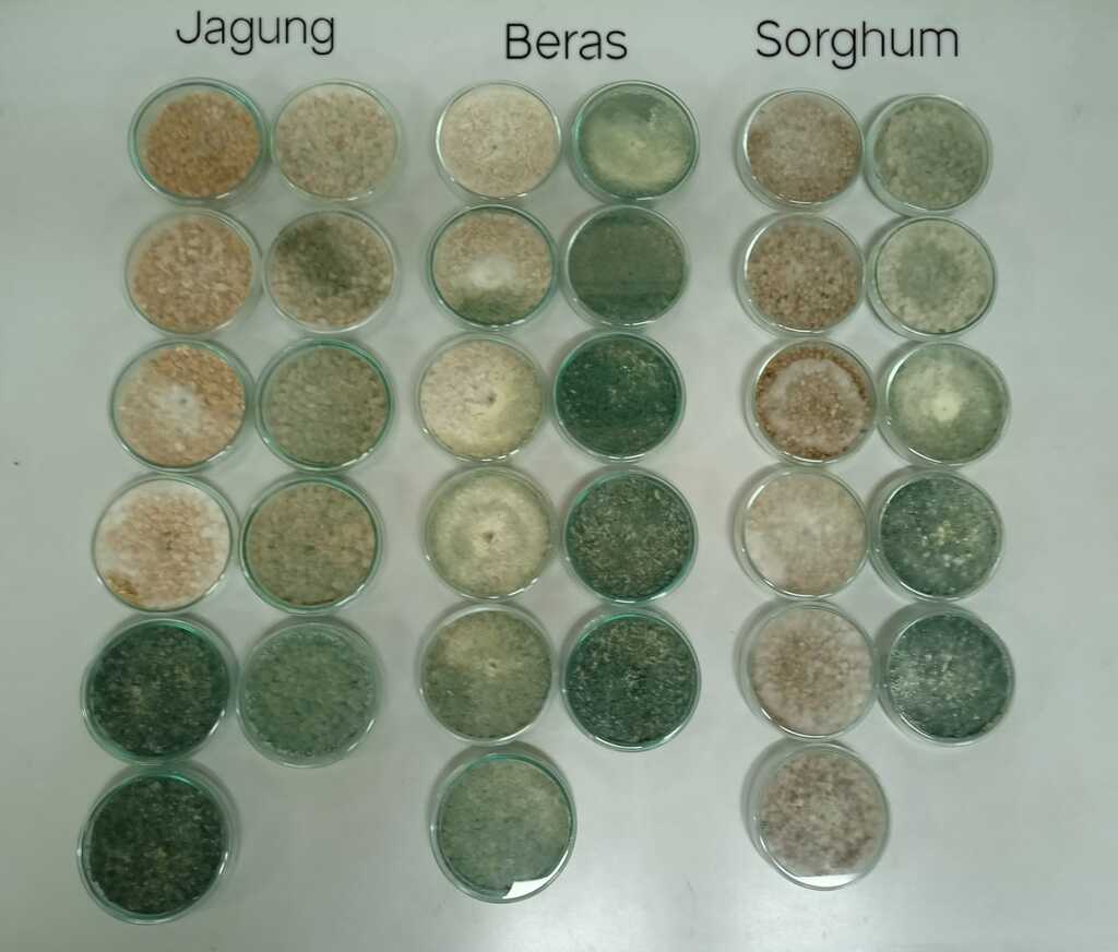 Hasil uji coba bakteri dan cendawan pada jagung, beras, dan sorghum