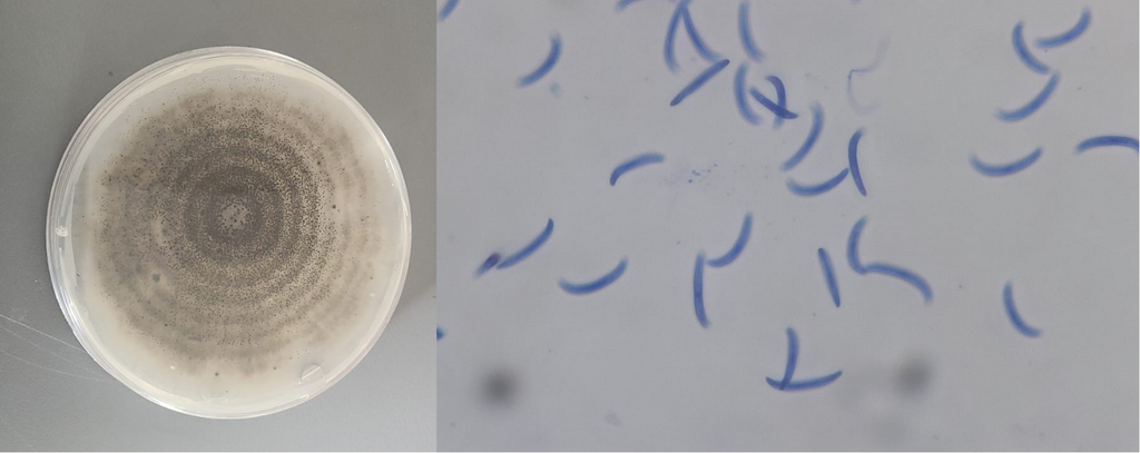 Isolat dan konidia Colletotrichum sp. (Dokumentasi milik PT. Suryo Riset Indonesia)